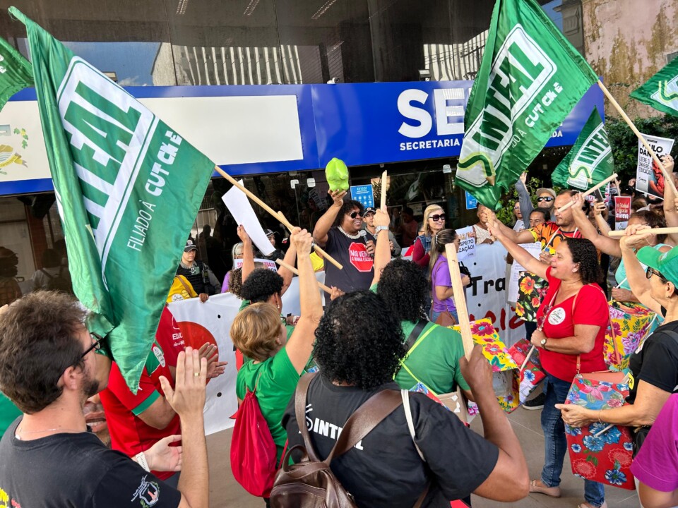 Trabalhadores da educação da rede estadual protestam em frente a Sefaz