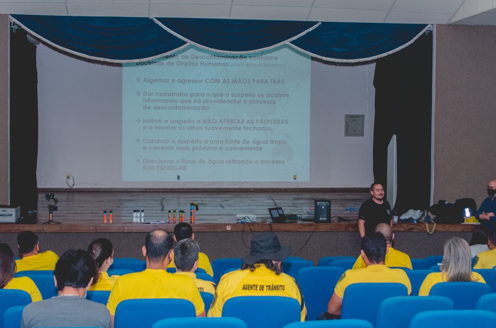 Agentes da Superintendência Municipal de Transportes e Trânsito (SMTT), participaram, nesta quarta-feira (3), no auditório do Sest/Senat em Maceió, de um treinamento para manuseio do novos Equipamento de Proteção Individual (EPI), sendo sprays não letais. Por estarem vulneráveis a agressões nas suas rotinas de trabalho, em casos de extremos, o material irá auxiliar na autodefesa dos profissionais.