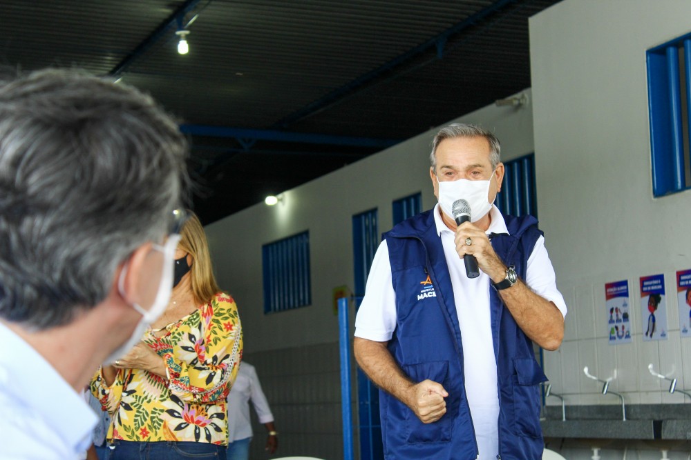 O secretário de Educação, Elder Maia, junto ao vice-prefeito Ronaldo Lessa, fez uma visita à Escola Municipal Professora Jarede Viana de Oliveira, no Clima Bom. A unidade educacional é uma das que abriram as suas portas para os estudantes nesta segunda-feira (30), após mais de um ano sem aulas presenciais. Na ocasião, o secretário ouviu as demandas da comunidade escolar e firmou compromissos de melhorias.